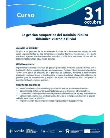 El 31 de octubre de 2025, asistimos a la jornada de formación “La gestión compartida del Dominio Público Hidráulico: Custodia fluvial”, dirigida a técnicos municipales, agentes medioambientales, entidades y personas vinculadas a la gestión de nuestros ecosistemas fluviales organizada por la Fundación LIMNE e impartida en el Ayuntamiento de Sot de Ferrer. Participamos en una jornada muy provechosa con distintas entidades como técnicos de la propia Confederación Hidrográfica del Júcar y AEMS-Ríos con vida como custodios de la cuenca del río Palancia.