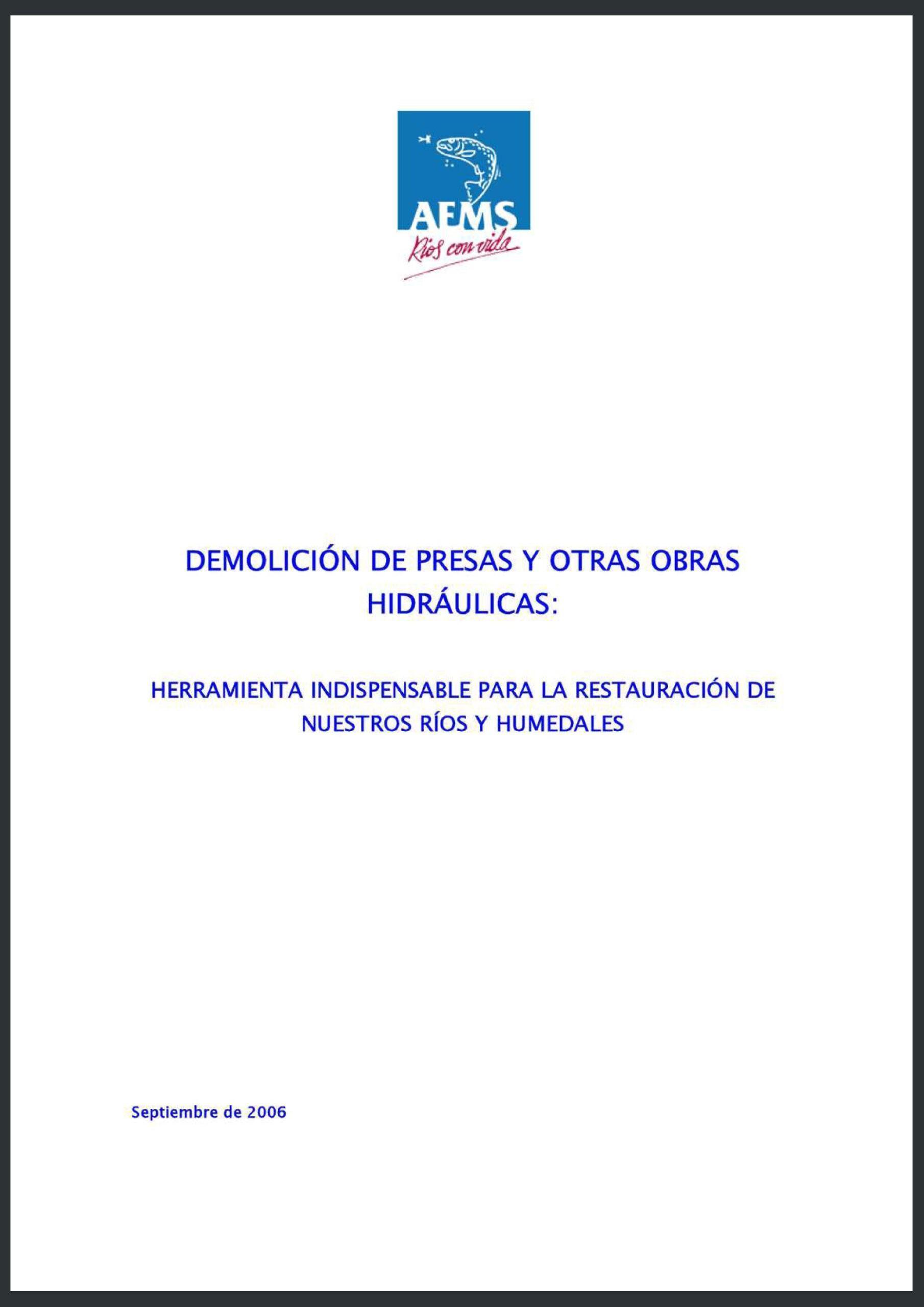 Demolición de presas y otras obras hidraúlicas: Herramienta indispensable para la restauración de nuestros ríos y humedales. Septiembre de 2006. Accede.