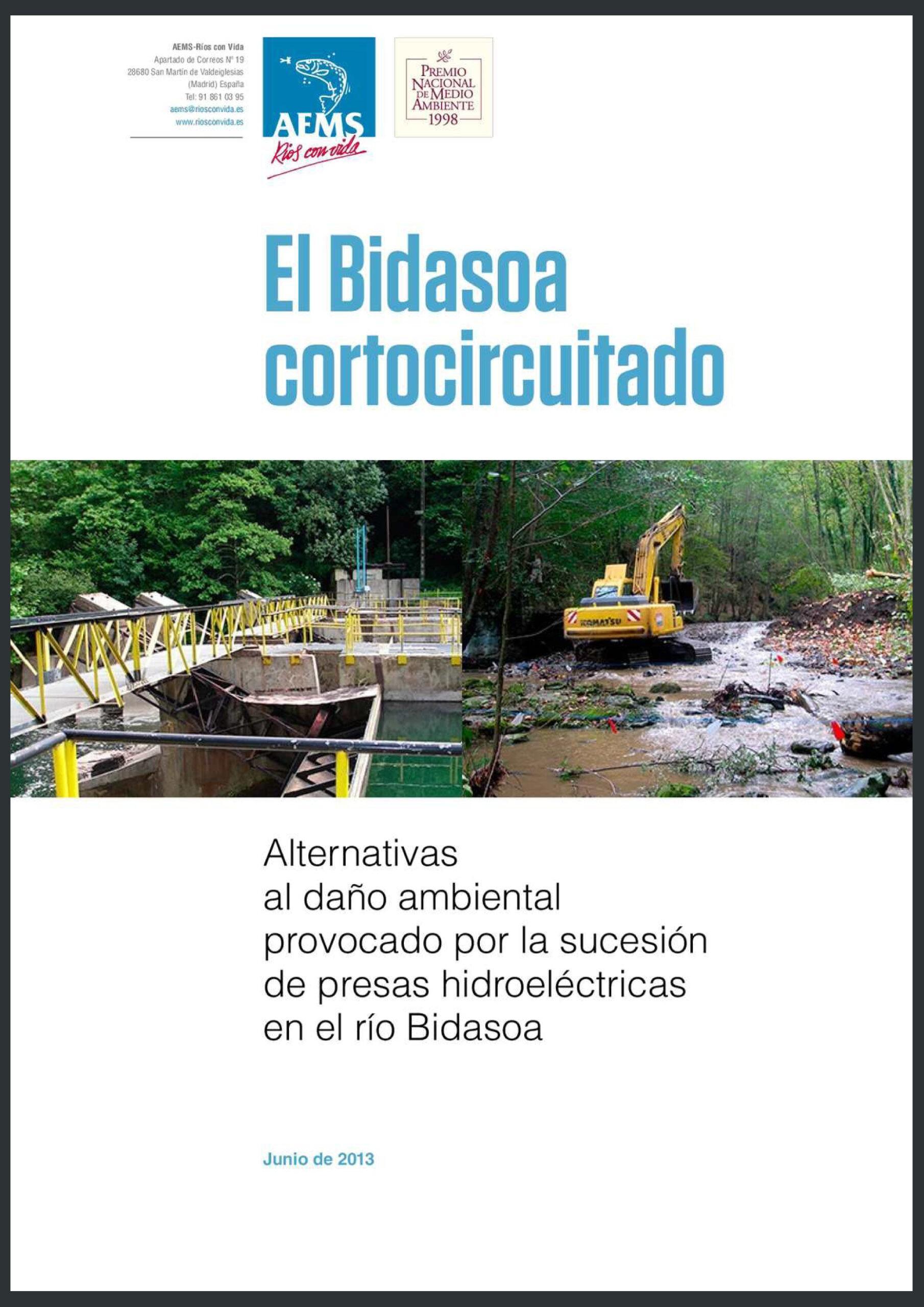 “El Bidasoa cortocircuitado”: los graves problemas que un centenar de presas hidroeléctricas y azudes provocan en el tramo navarro del salmonero río Bidasoa, y propuestas de mejora. Junio de 2013. Accede.