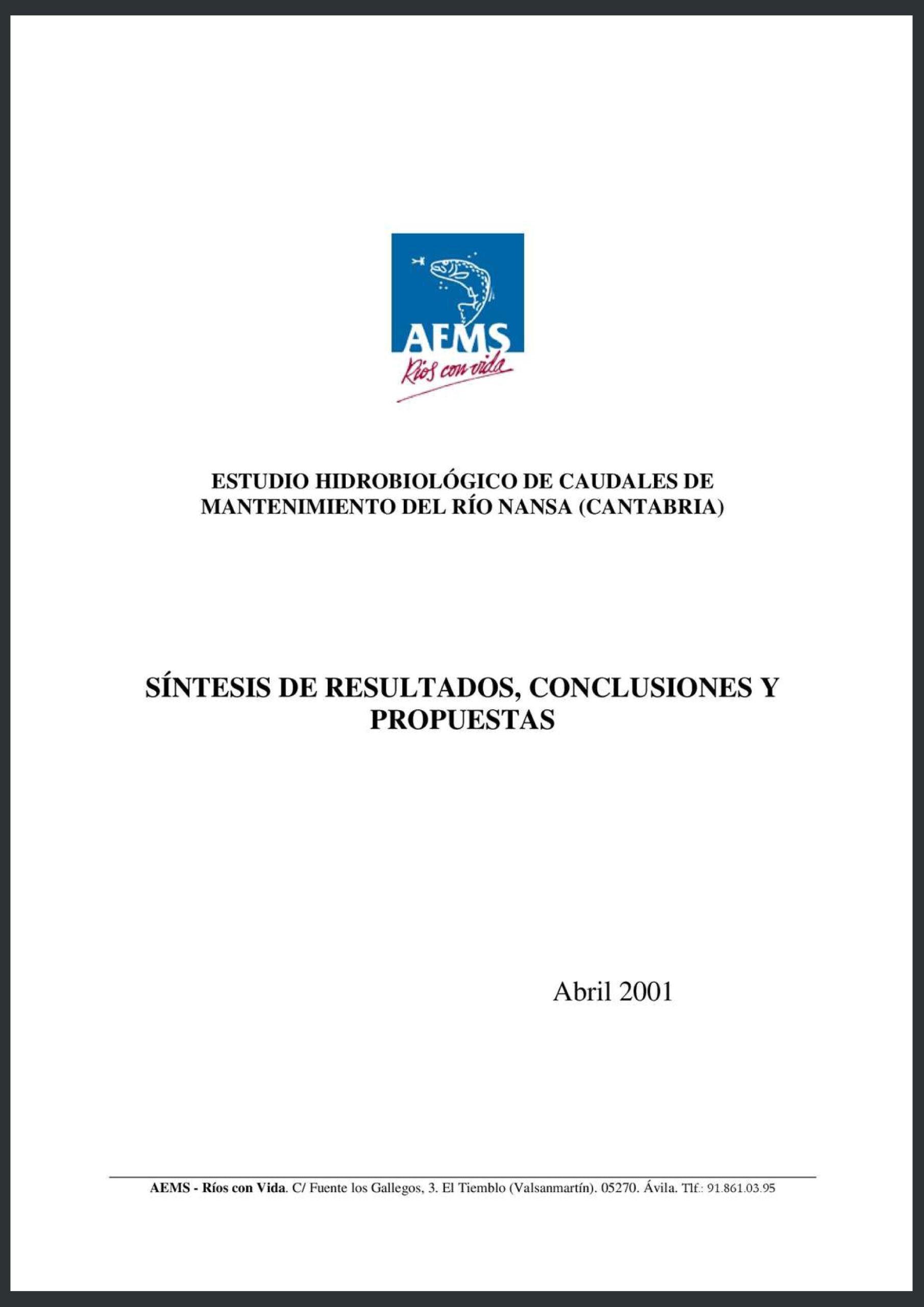 Estudio hidrobiológico de caudales de mantenimiento del río Nansa (Cantabria). Abril de 2001. Accede.