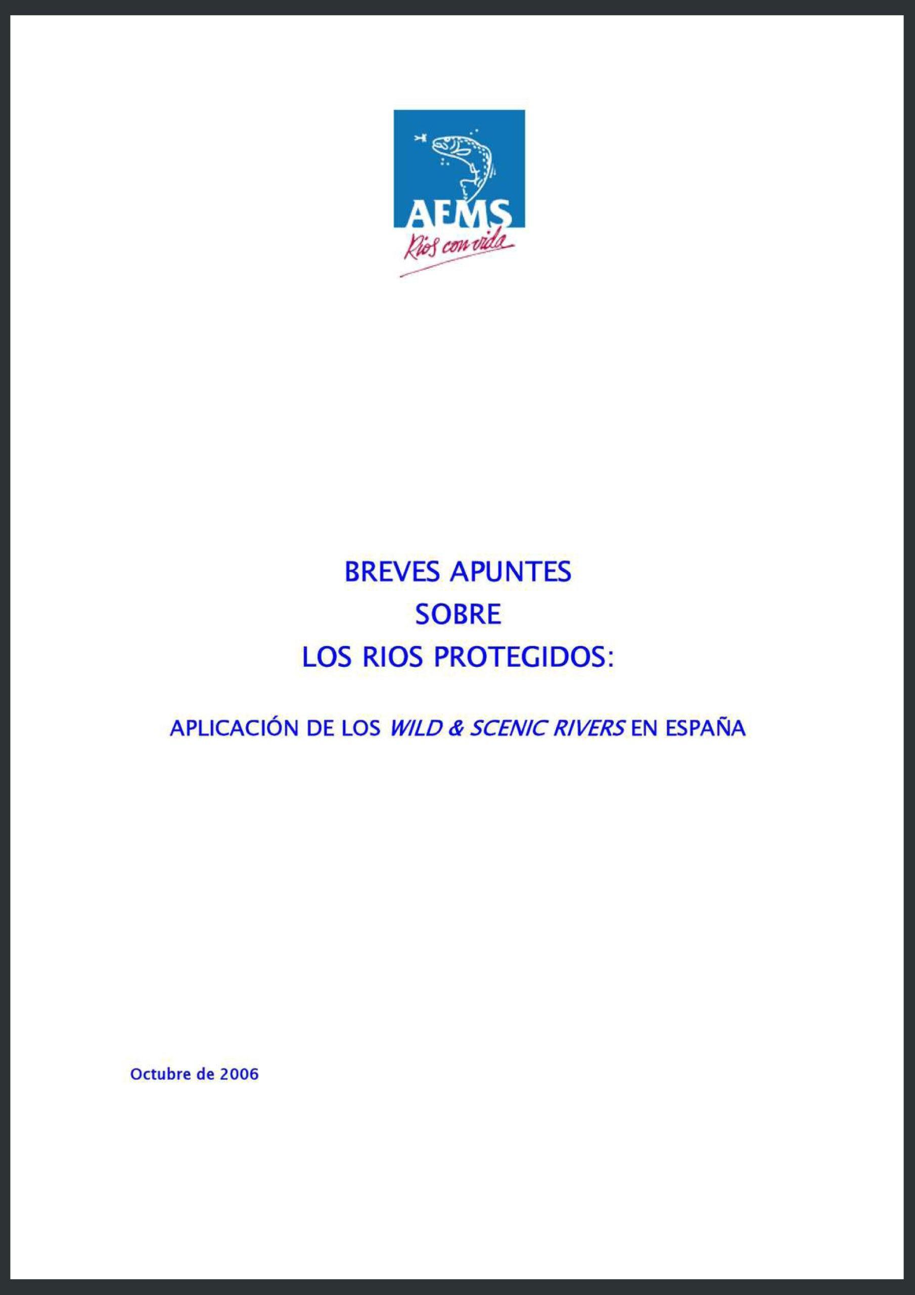 Los ríos protegidos en España: aplicación de la figura de los “Wild & Scenic Rivers”. Octubre de 2006. Accede.