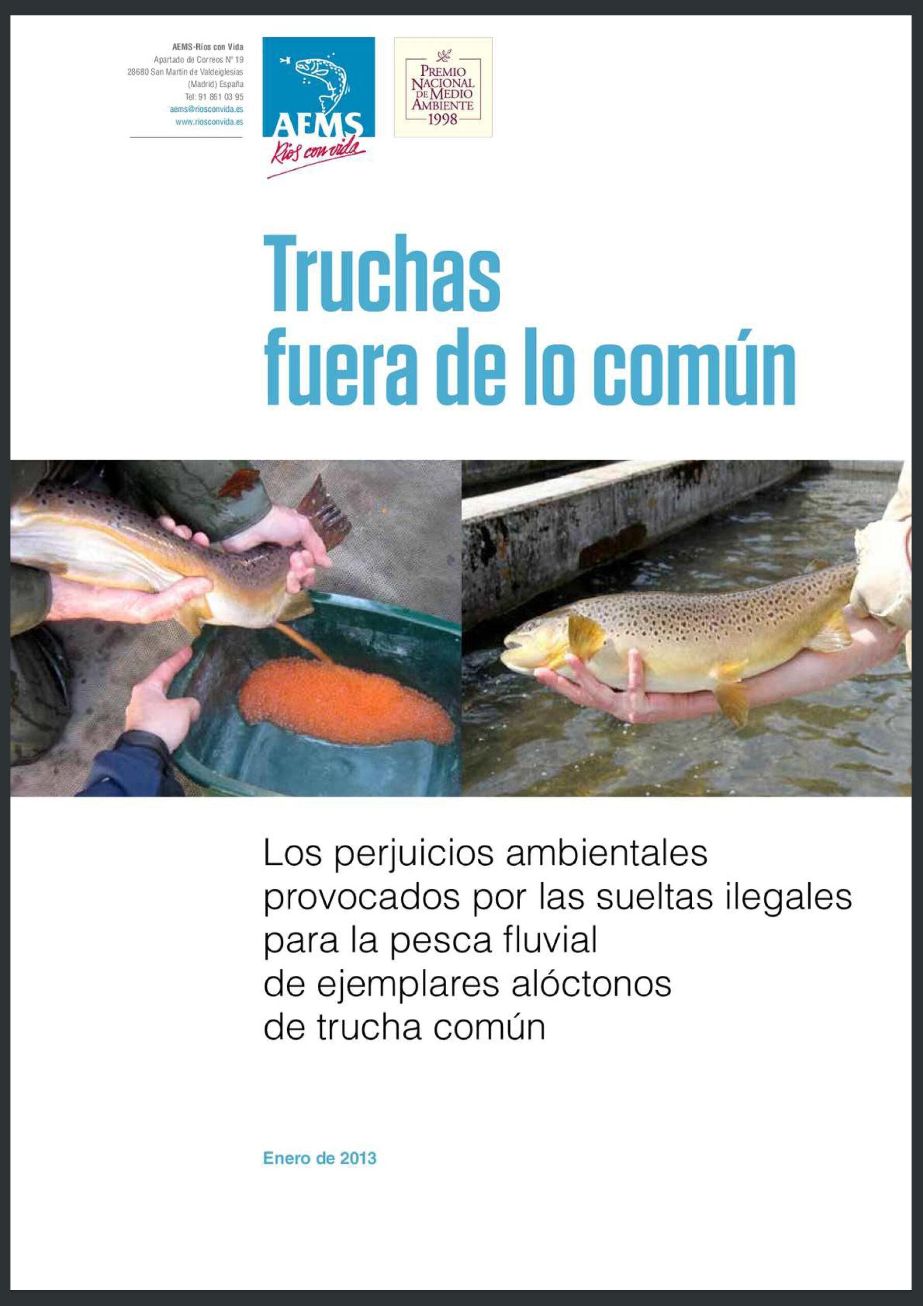“Truchas fuera de lo común”: los perjuicios ambientales provocados por las sueltas ilegales para la pesca fluvial de ejemplares alóctonos de trucha común. Enero de 2013. Accede.