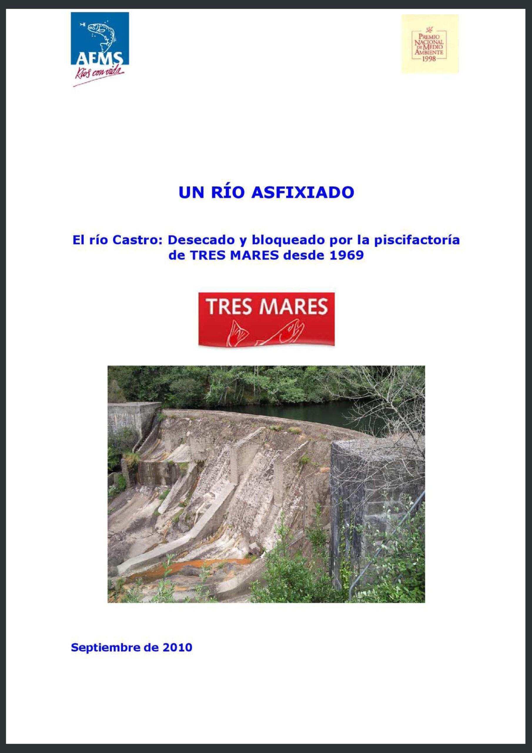 “Un río asfixiado: El río Castro”: Desecado y bloqueado por la piscifactoría de TRES MARES desde 1969. Septiembre de 2010. Accede.